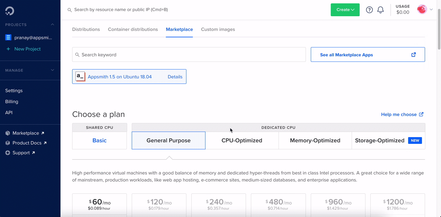 - Find Appsmith from the DigitalOcean marketplace here.