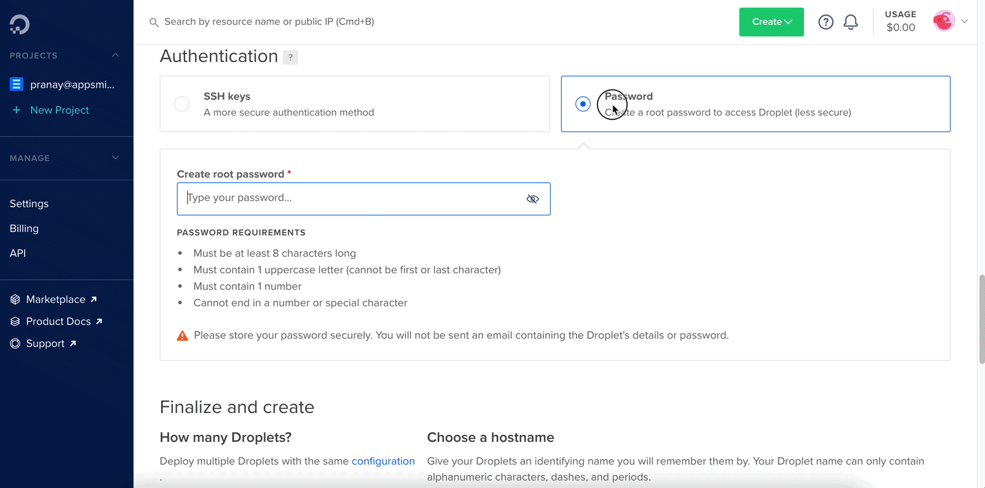 Login to your DigitalOcean account to get started. If you are a new user, use this link and get a $25 credit on DigitalOcean.